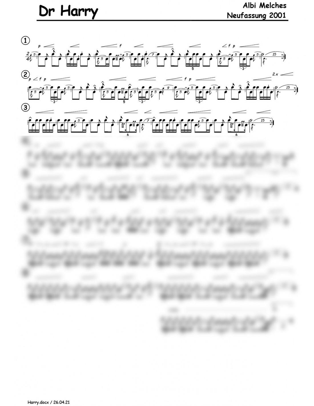 Harry, dr / 1 Trommelnoten / Melches Albi