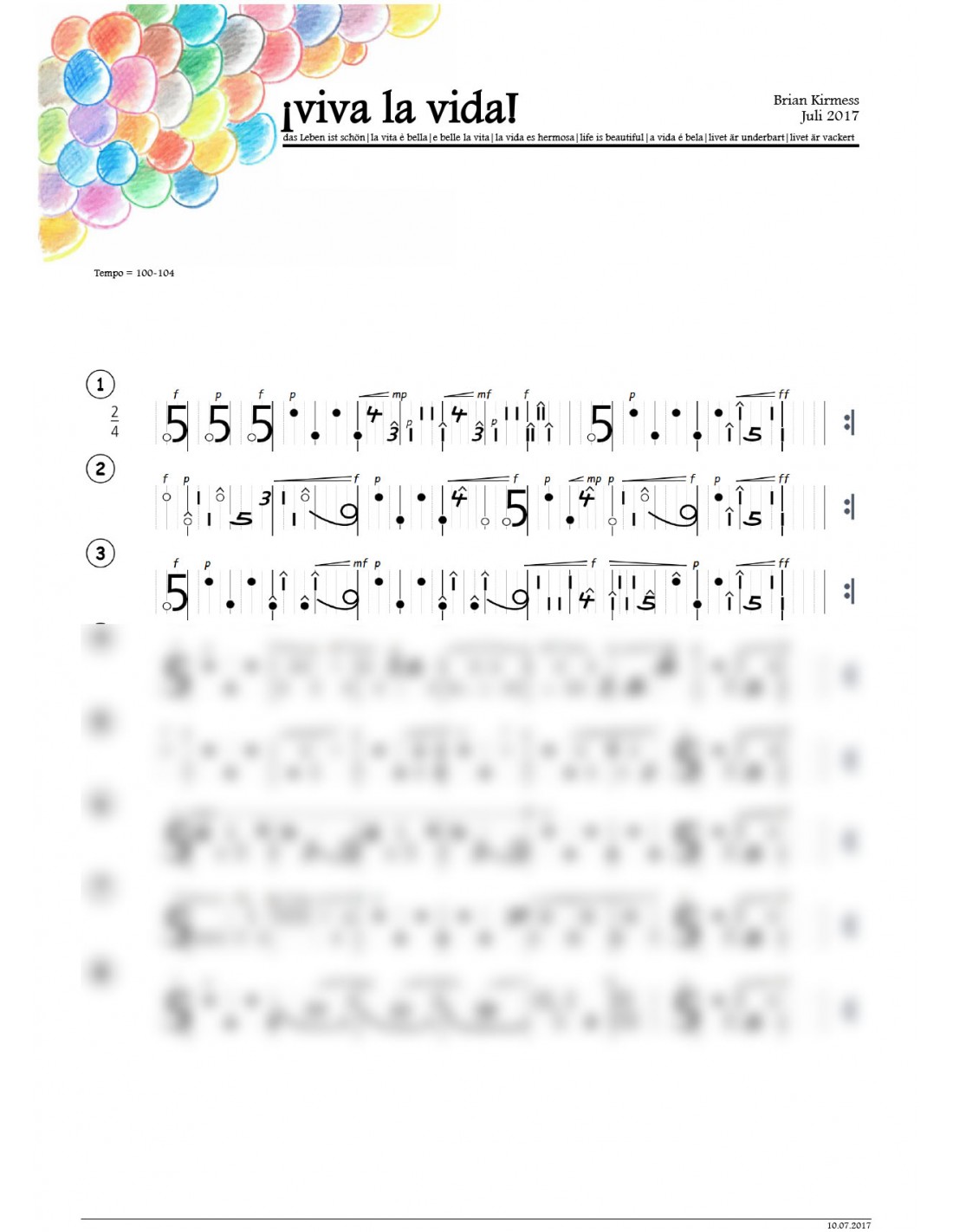 Viva la vida! 2 Trommelnoten-Hieroglyphen / Kirmess Brian