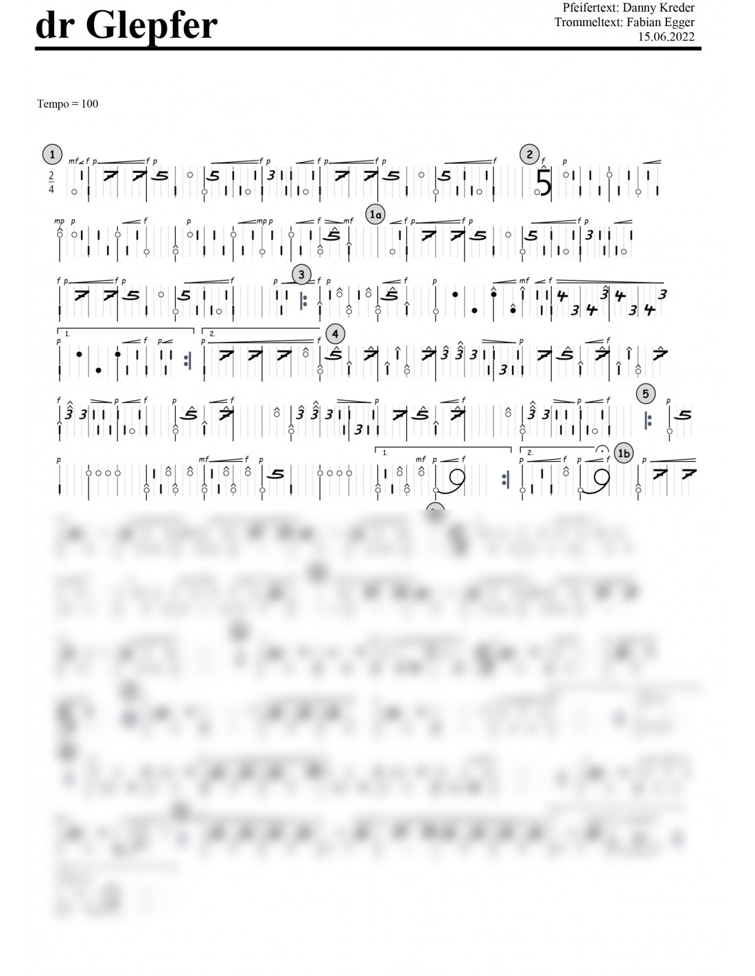 Glepfer, dr / 1 Trommelnoten-Hieroglyphen zu Pfeifermarsch / Egger Fabian