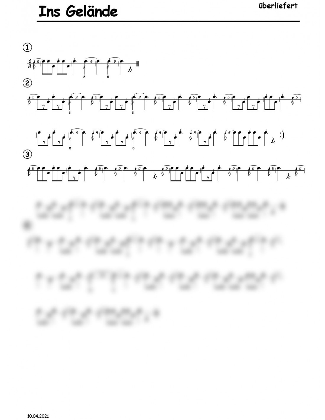 Ins Gelände 1 Trommelnoten / Überliefert