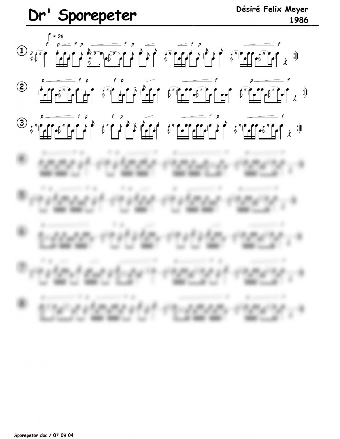 Sporepeter, dr / 1 Trommelnoten / Meyer Désiré Felix