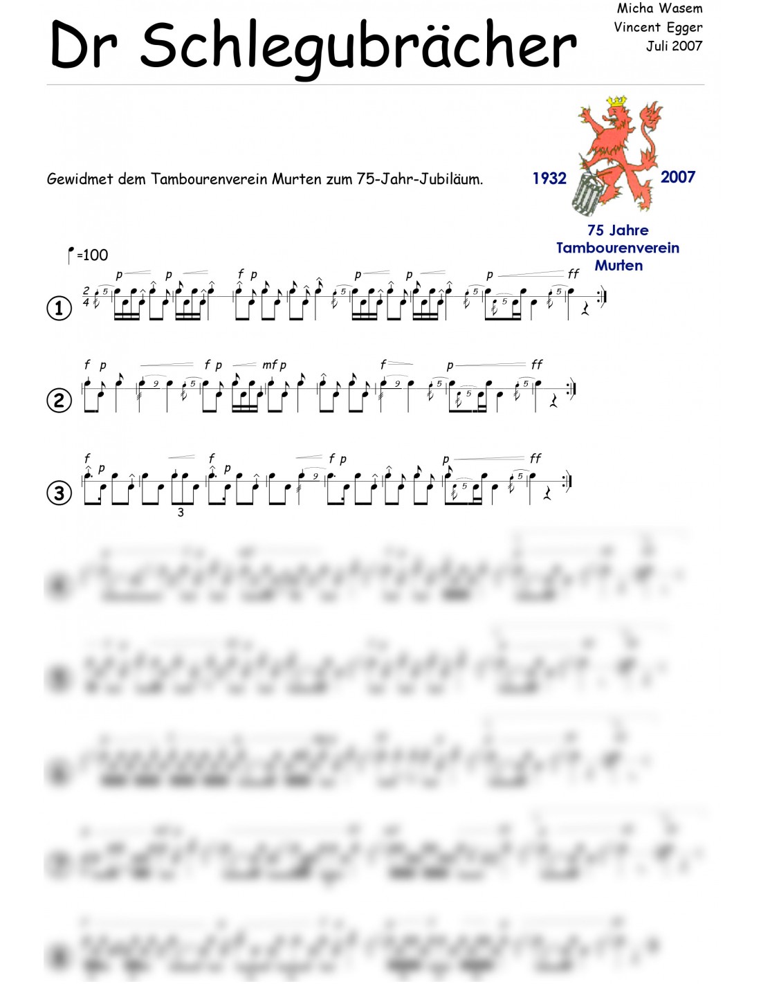 Schlegubrächer, dr / 1 Trommelnoten / Egger Vincent & Wasem Micha